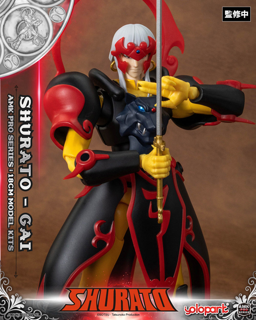 平成元年放送の「天空戦記シュラト」から、八部衆の一人であり、狼の神甲冑を纏う主人公シュラトのライバル、夜叉王ガイが新登場!ガイの鋭く攻撃的なシルエットを再現。ブラックをベースにレッドのアクセントを施し、アニメのデザインを細部まで追求!